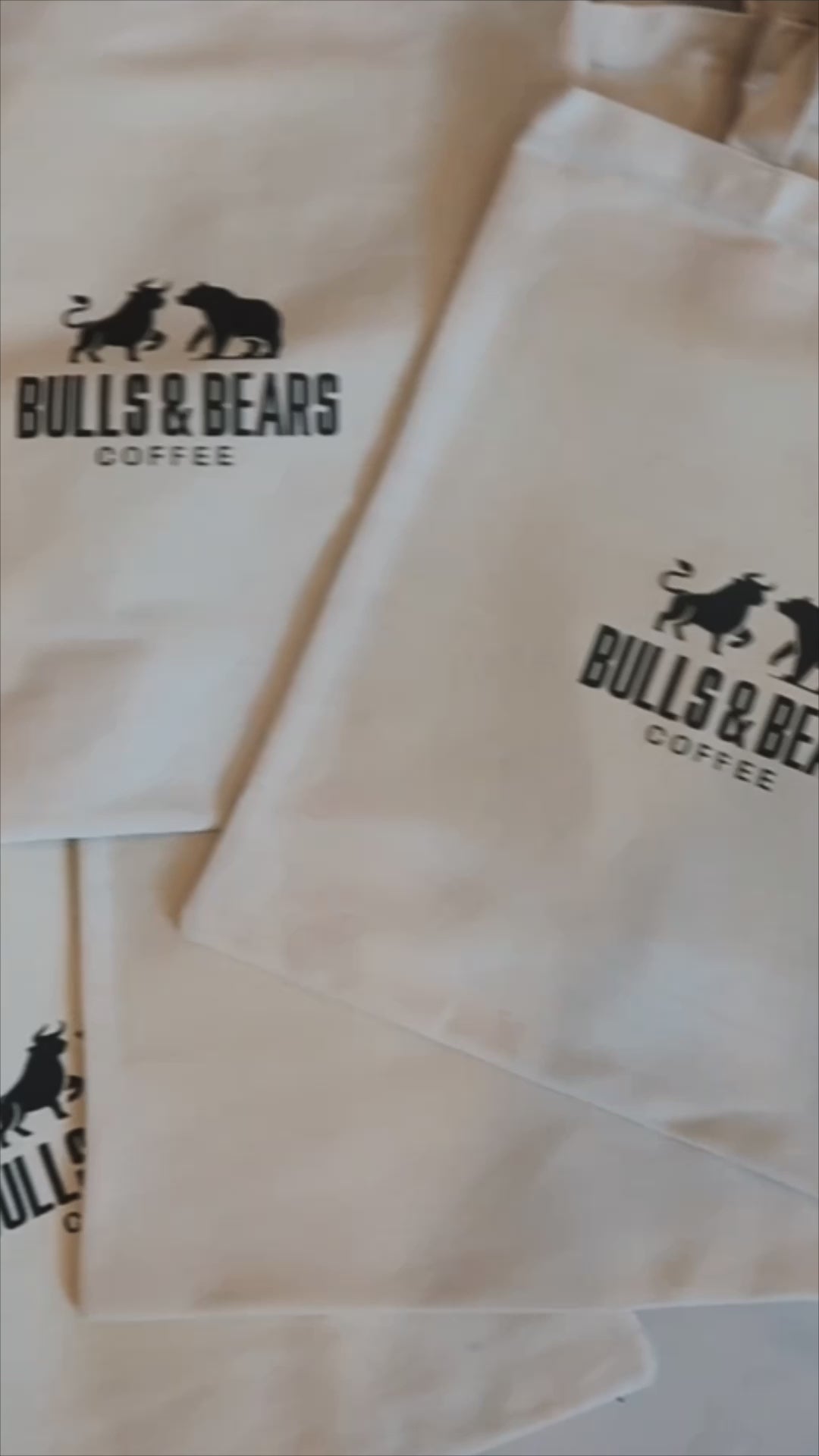 Carry your daily essentials with our Bulls & Bears Tote Bag. Featuring our 'Bulls & Bears Coffee' logo, this tote is a playful way to show off your love for caffeine and the stock market. Perfect for any financial enthusiast or coffee lover!